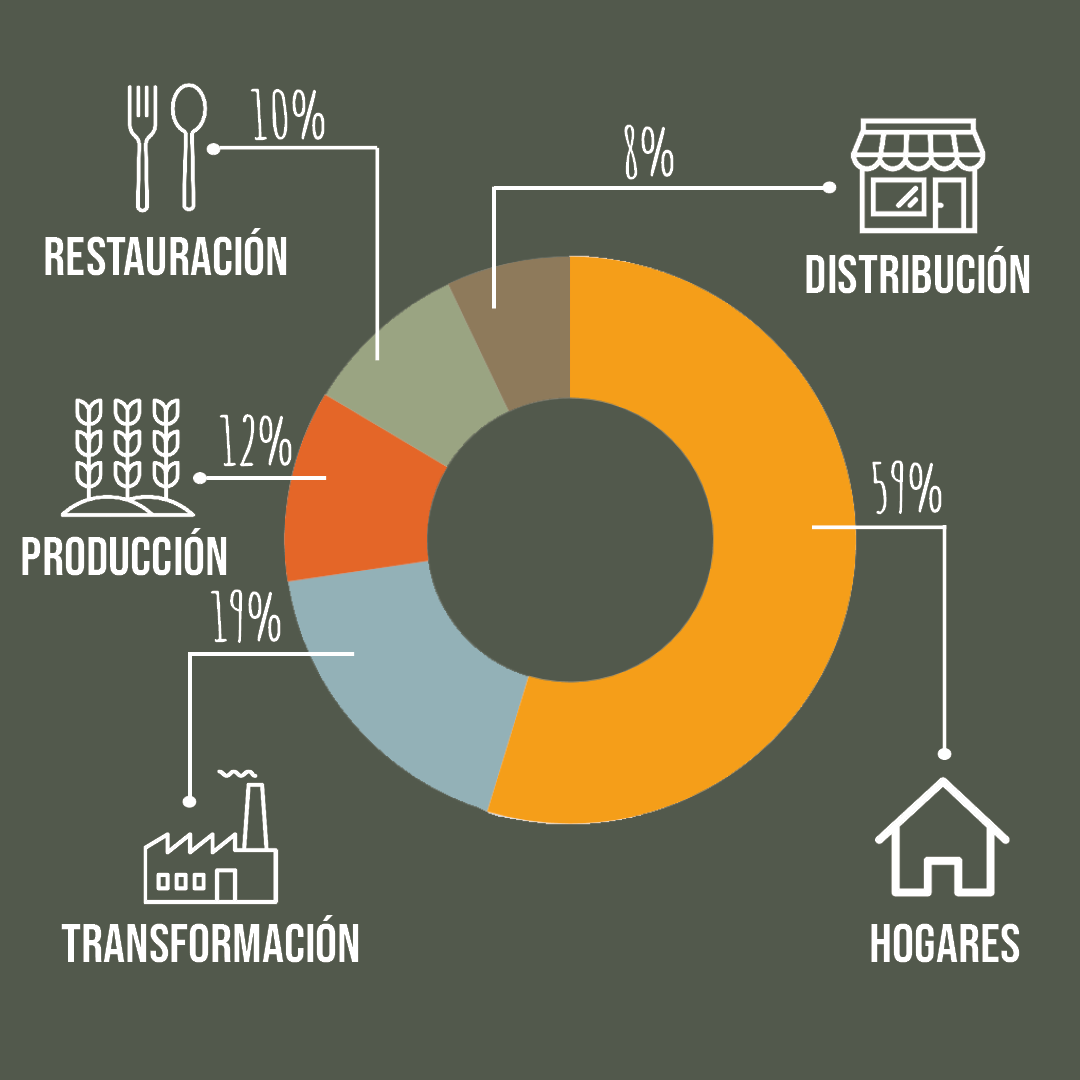 En primer lloc, és important conéixer en quina fase de la cadena de valor es produeix en grau més alt la pèrdua i desaprofitament d'aliments, sent la distribució la següent: