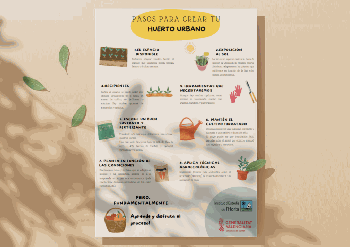 Infografía con los beneficios y los pasos para crear un huerto urbano