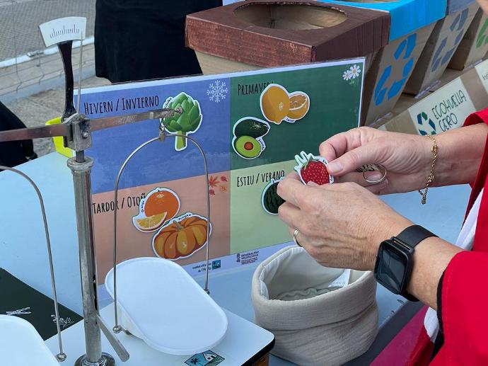 Con un panel con las cuatro estaciones e imanes con algunas frutas y verduras representativas de la Comunitat Valenciana se ha llevado a cabo una actividad por la que las personas participantes debía ubicar cada producto agrario con la estación en la cual se cosecha y se encuentra en los mercados locales.